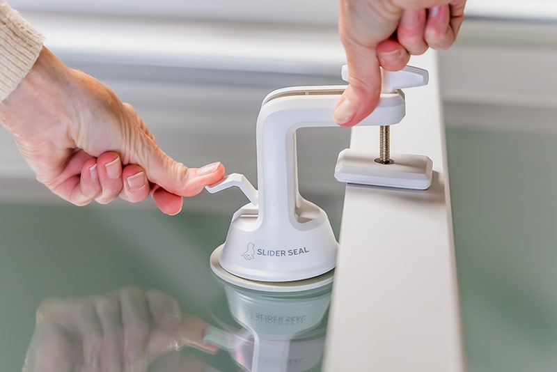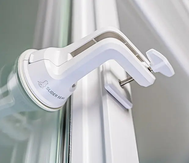 Slider Seal is your solution to a more energy-efficient home. This handy tool helps lock your sliding glass doors in place, eliminating cold air seeping between loose panels.